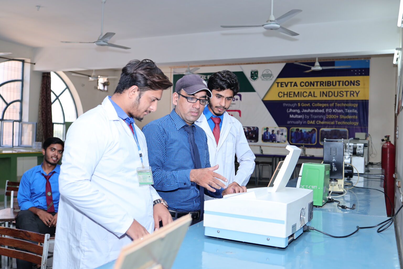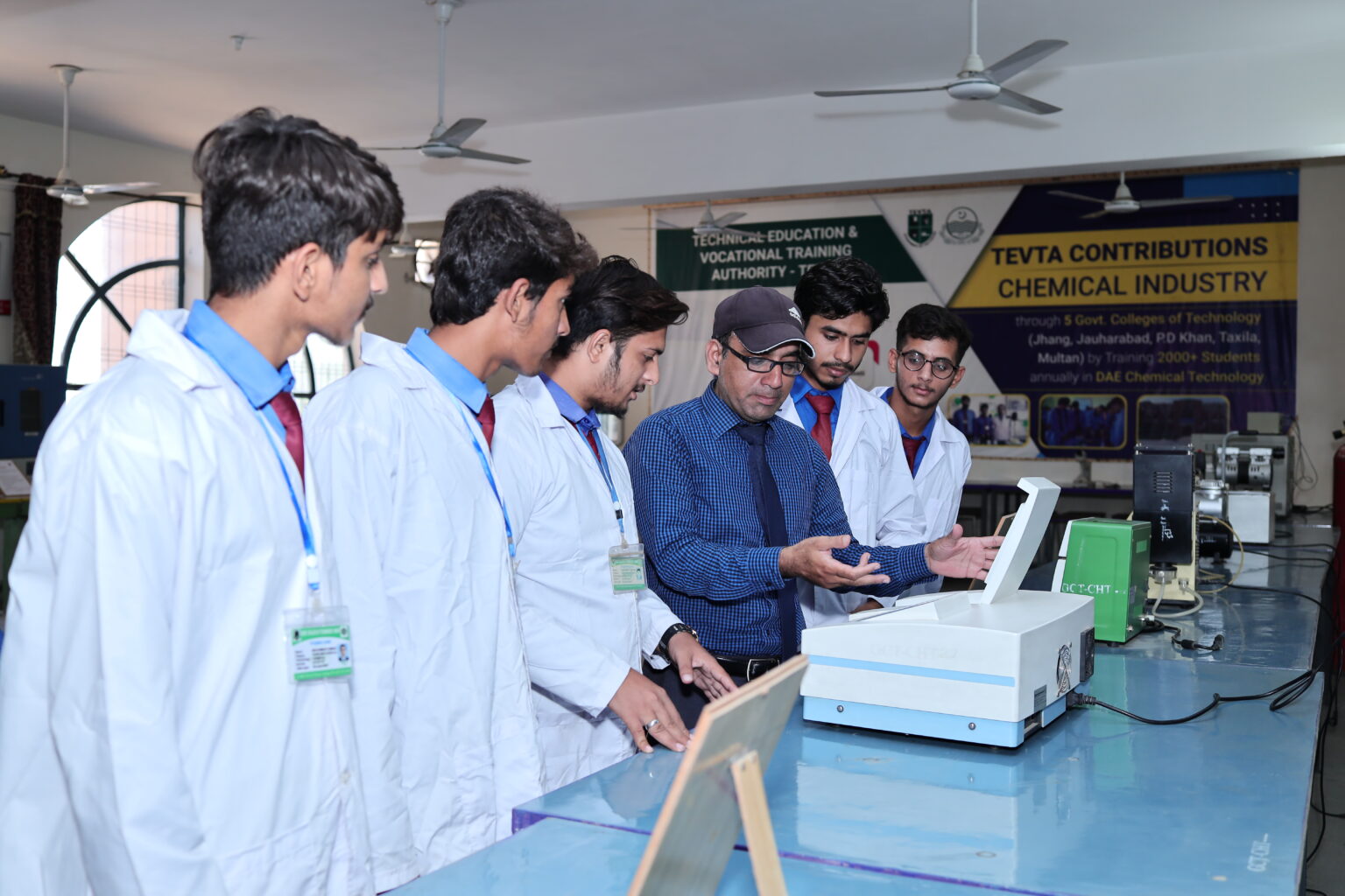 Chemical Technology is at the heart of industrial progress, playing a key role in industries such as pharmaceuticals, fertilizers, textiles, petroleum, food processing, and environmental management. At Government College of Technology, Jhang, our Chemical Technology program trains students to understand the science of chemical processes and apply them in practical industrial settings. By combining theoretical knowledge, laboratory experiments, and industrial training, we prepare graduates to contribute effectively to Pakistan’s growing industrial sector and compete in the global job market.